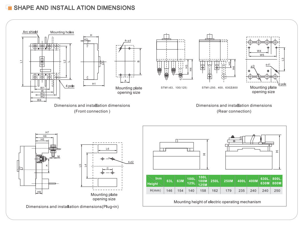 | Người mẫu | STM1-125 | STM1-250 | STM1-400 | STM1-630 | STM1-800 | STM1-1250 | |||||||||||||